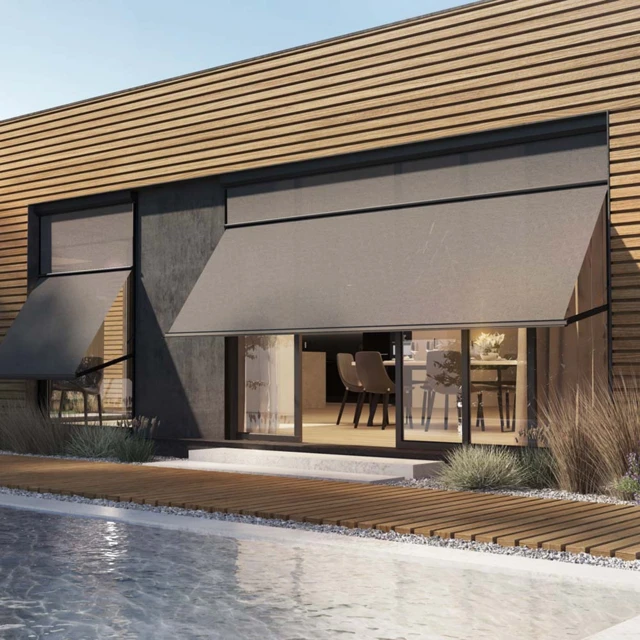 Połączenie markizy i screena jako niezawodna ochrona przed słońcem i produkt, który może ozdobić fasadę.